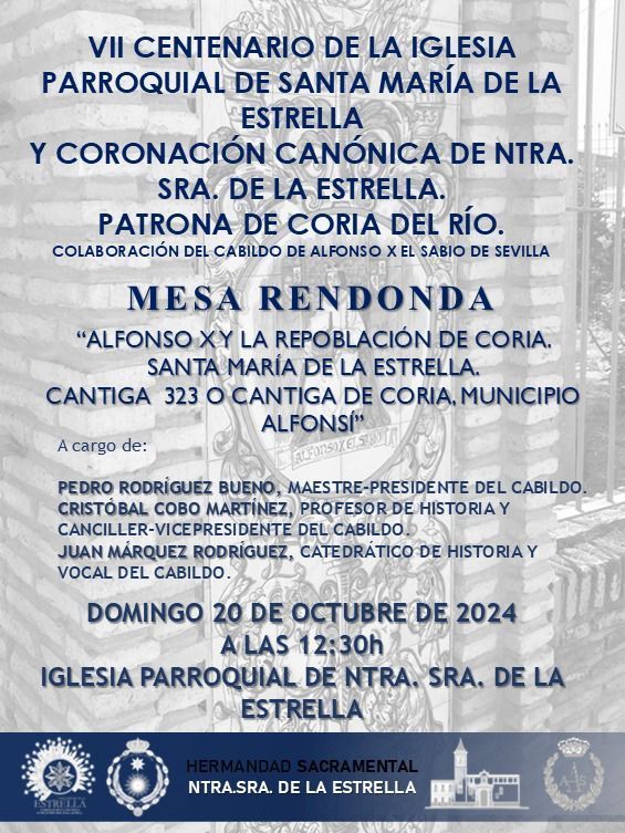 Triana y Coria del Río, eternamente unidas por el Guadalquivir, comparten igualmente el papel protagonista del rey sabio en la fundación de sus respectivas parroquias. Esta conmemoración del VIII centenario del nacimiento del rey sabio, de tan grato recuerdo para Sevilla y su Iglesia, debe servirnos para mantener viva la memoria de su devoción y de su legado cultural.