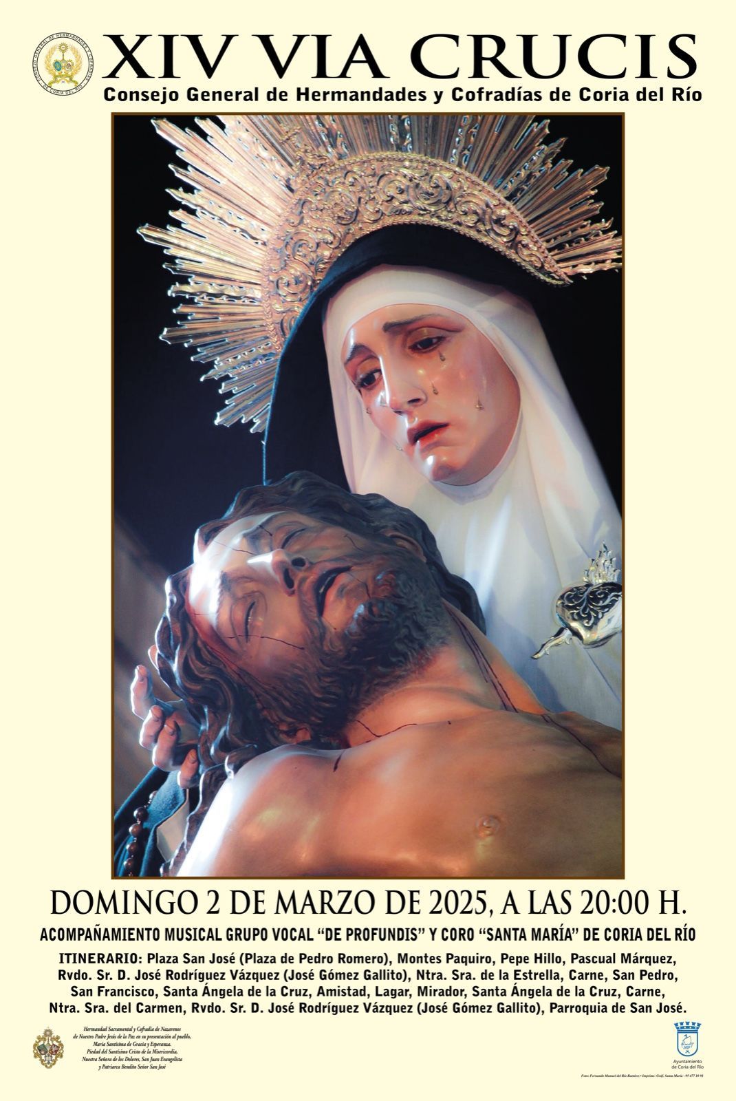 En el día de ayer se presentó en el salón de Plenos del Ayuntamiento de Coria del Río el cartel de la Semana Santa 2025 obra del artista de nuestro pueblo D. Juan Manuel Santaella Vázquez, además de entregar las tradicionales pastas del Pregón a D. Nicolás Quero Carvajal. Desde El Consejo de Hermandades y Cofradías de Coria del Río queremos agradecer la colaboración de nuestro Ayuntamiento en la organización de este evento, a nuestro Director Espiritual D. Antonio Santos, Hermanos Mayores, otras autoridades y a nuestros vecinos que nos acompañaron. Dar nuestra más sincera enhorabuena al autor del cartel y desear a nuestro pregonero lo mejor para el próximo domingo 30 de marzo.