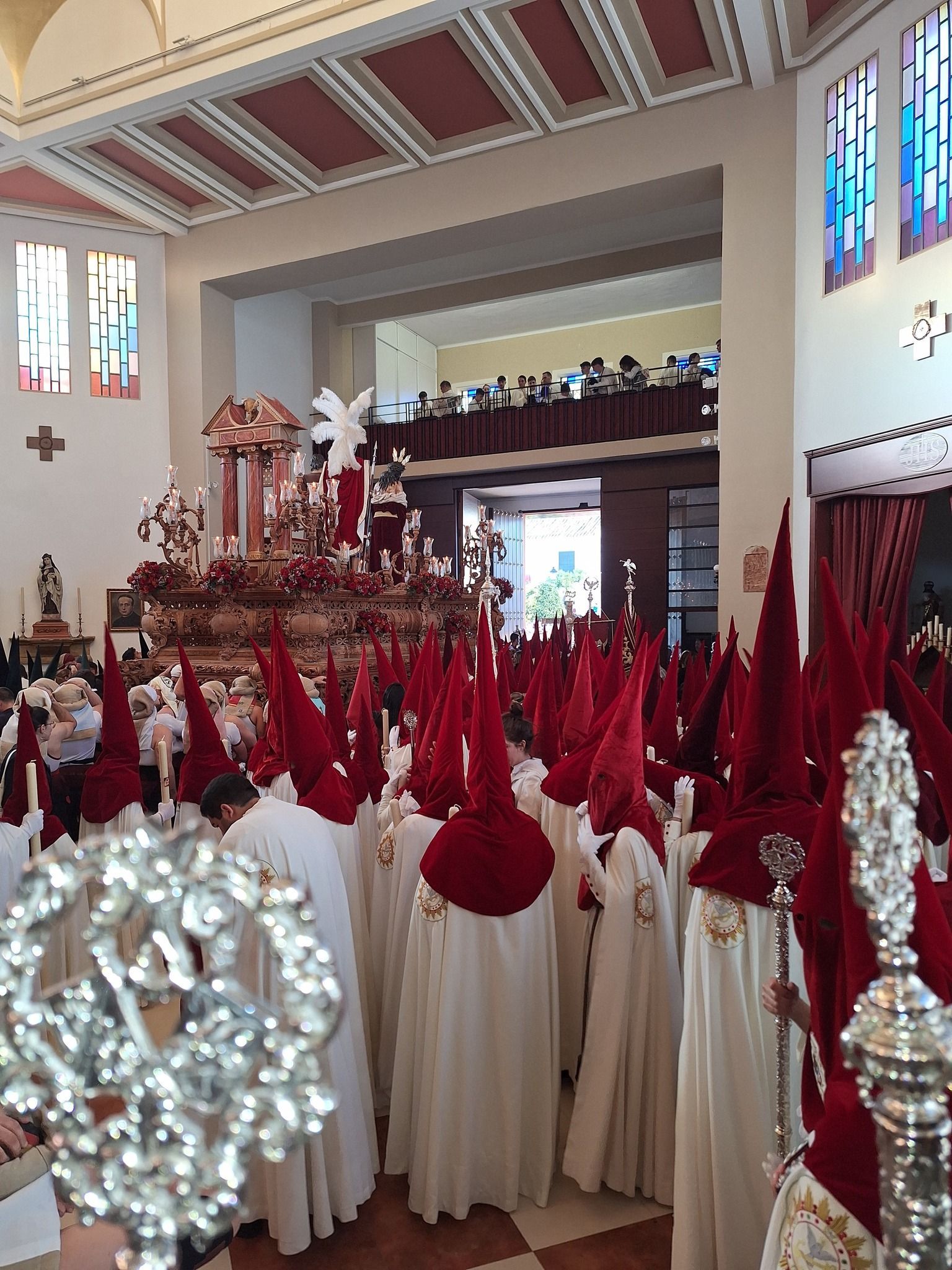 El color ha sido protagonista. Coria del Río no vive su Semana Santa en blanco y negro; la vive con la intensidad de la fe heredada, con la calidez de un pueblo que acompaña, que reza y que siente. Los amarillos y rojos hablan de la luz que anuncia la Resurrección . Los violetas y magentas evocan la Pasión, la entrega, el amor llevado por su gente….